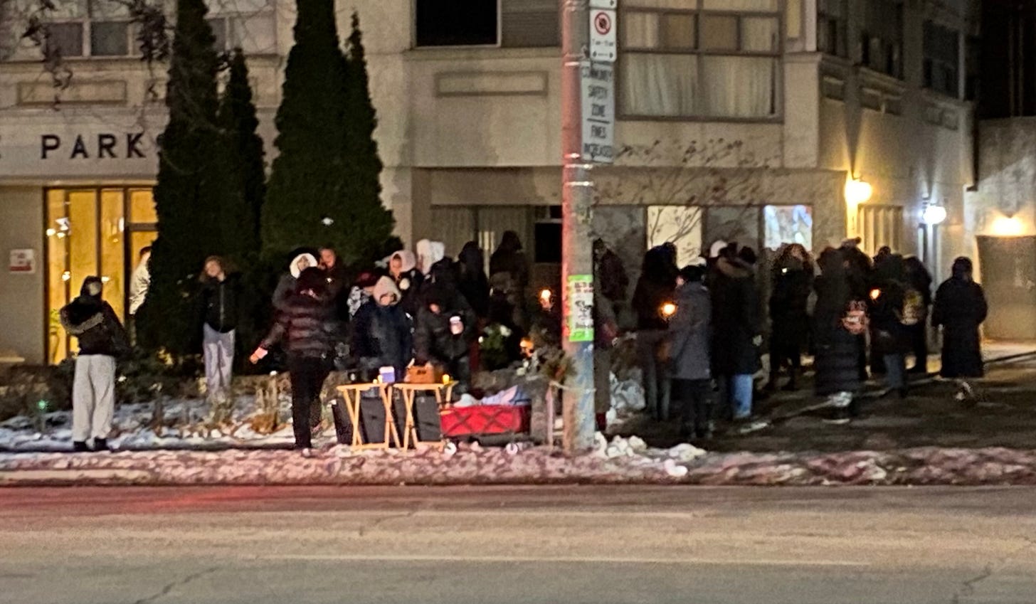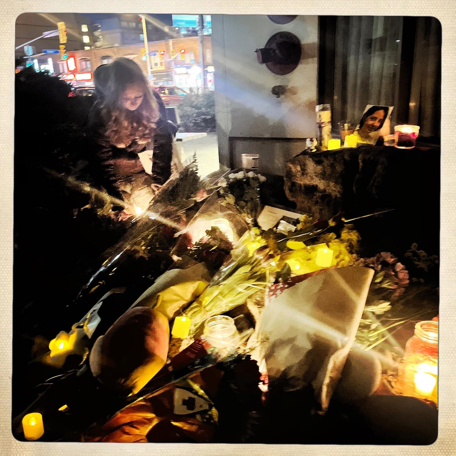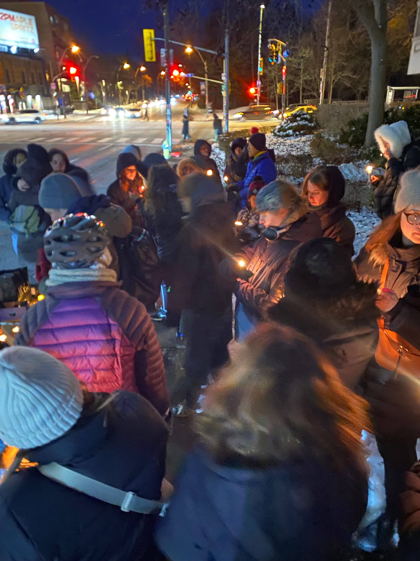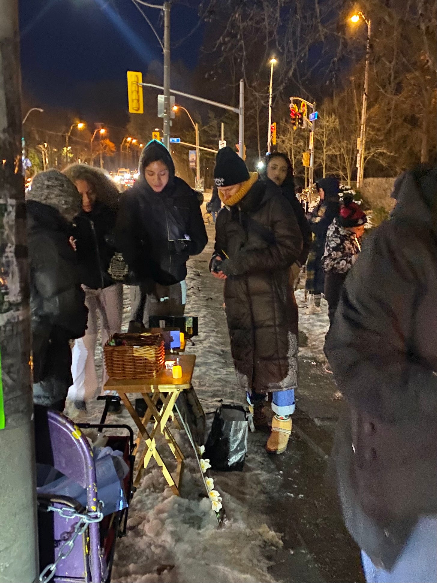 A thing happened last night under the full moon of a Toronto sky. As the sunset the people gathered. The frosty evening air set in and we all huddled together holding candles to honour and remember my beautful girl. Ula.